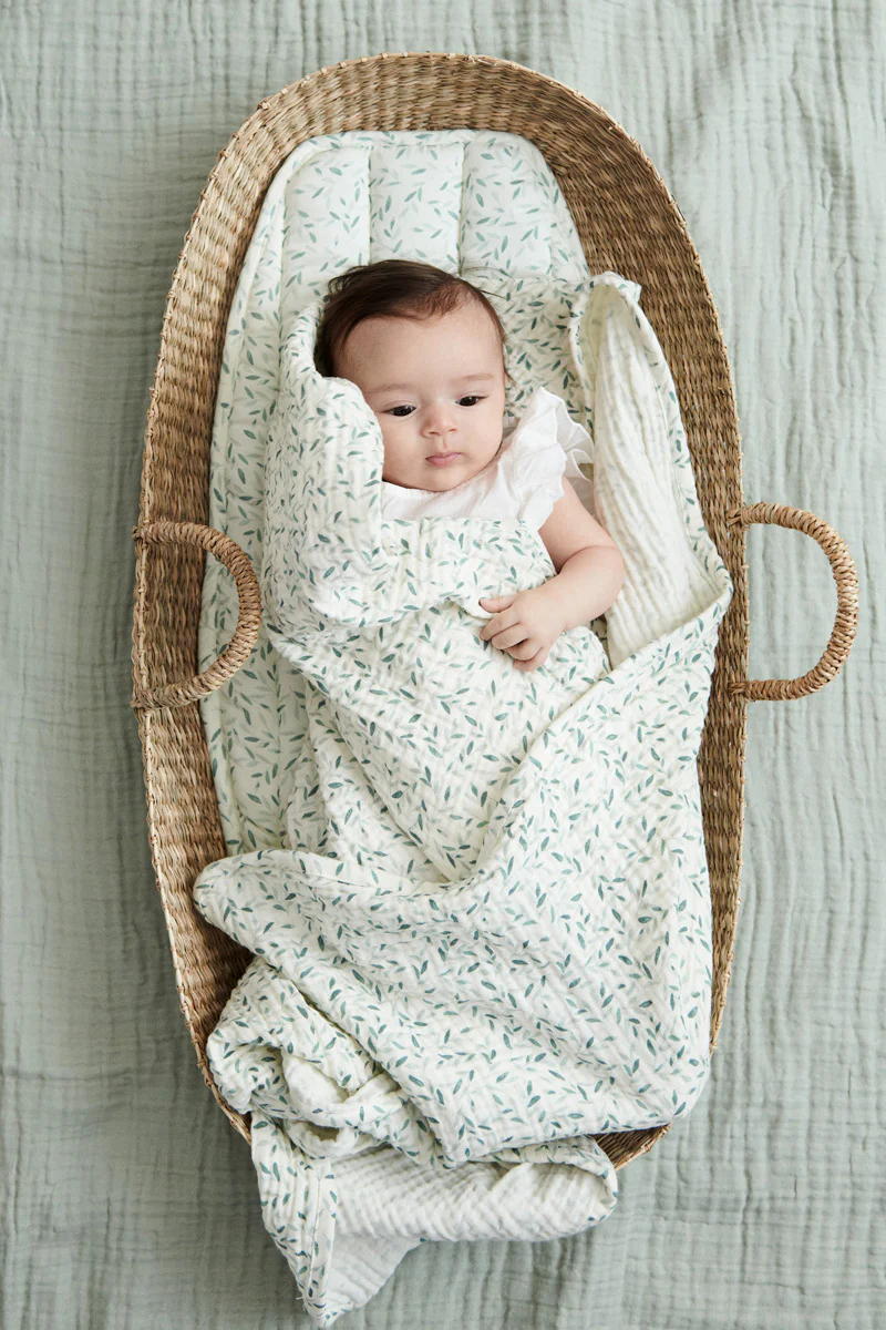 This beautiful organic cotton printed green leaves swaddle from Cam Cam Copenhagen are made from 100% organic GOT certified Cotton and are super soft and breathable which makes them ideal for babies as it helps them regulate their body temperature for safe sleeping and makes them feel secure like as if they were back in the womb. These swaddles can be used for swaddling your baby or use them as stroller cover, burp cloth or nursing cover when you’re on the go!