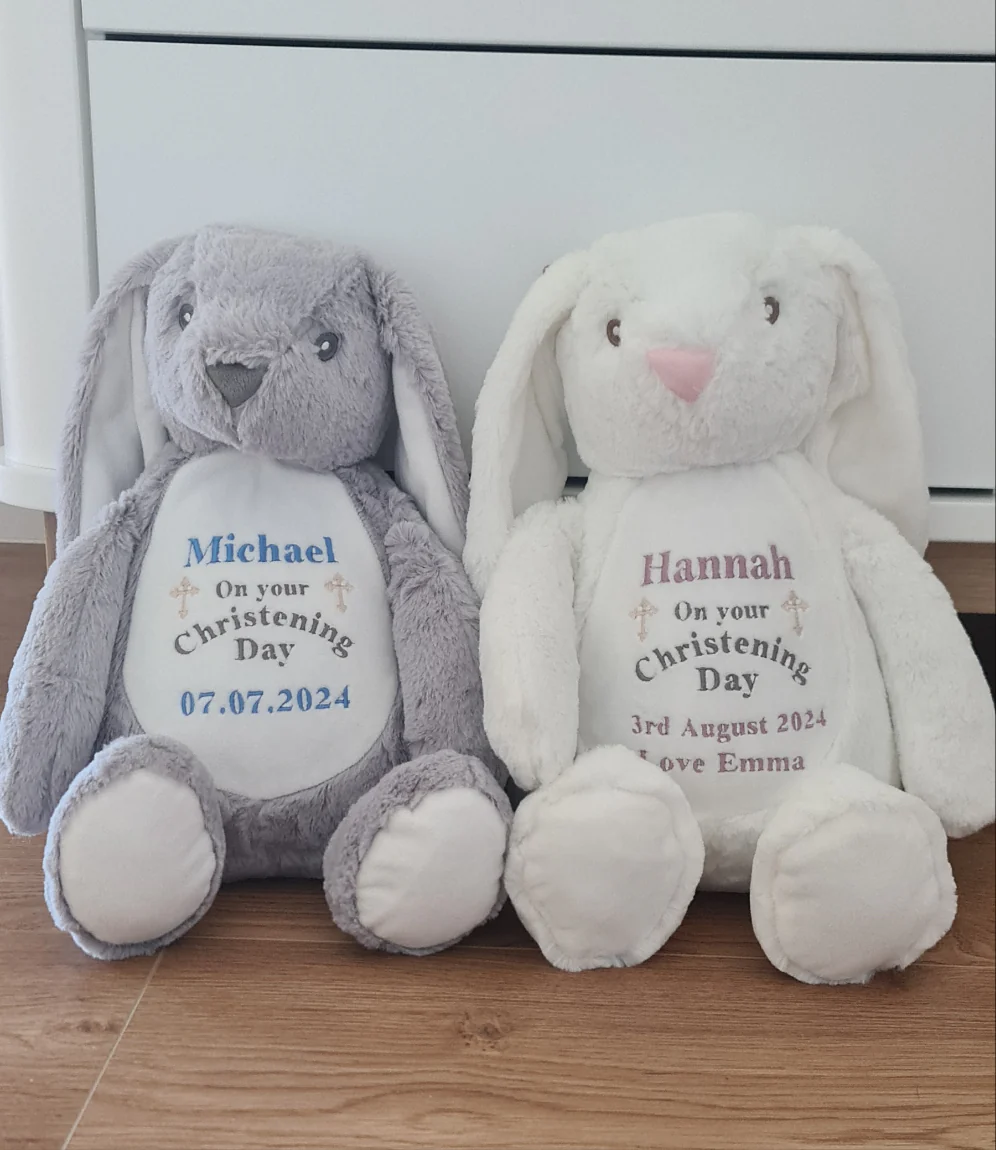 These adorable soft bunnies make an absolutely fabulous keepsake for your little ones to keep forever .They are beautifully embroidered and available in 2 design options for a boy or a girl and created in our showroom here in Dublin