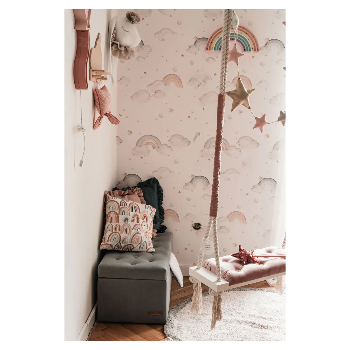 This delicate fairytale wallpaper with its pastel rainbows would look wonderful on a feature wall in a nursery or kids room